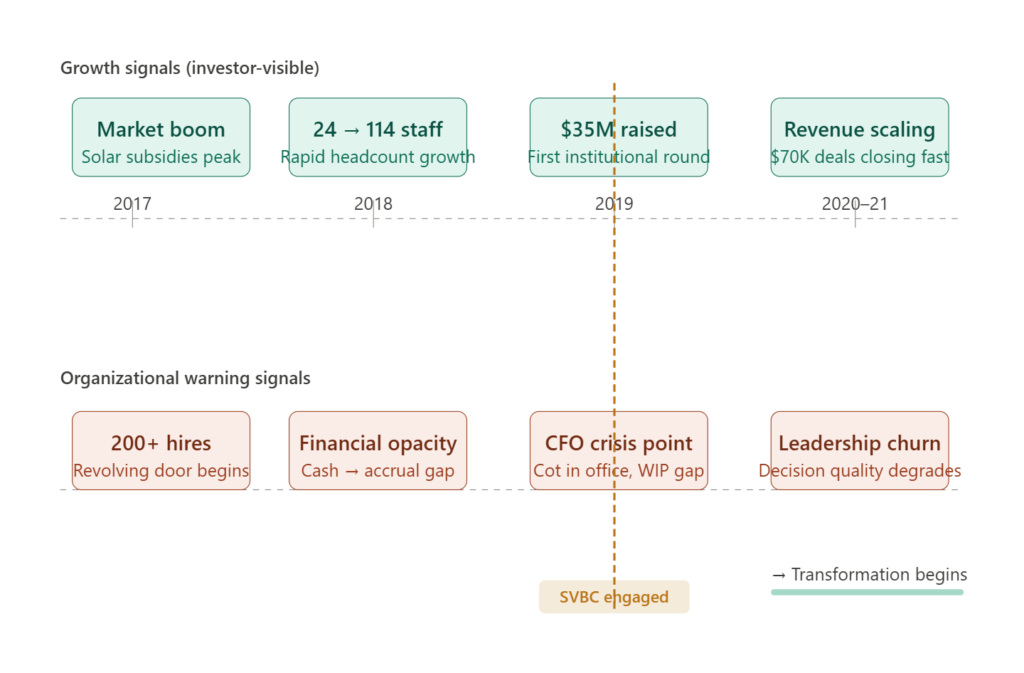 Pressure reveals, it doesn’t create. Every dysfunction I found at Helix Solar had been present before the pressure arrived. The pressure didn’t build the problems — it surfaced them, accelerated them, and made them impossible to ignore. By the time they were impossible to ignore, they were also much more expensive to fix.